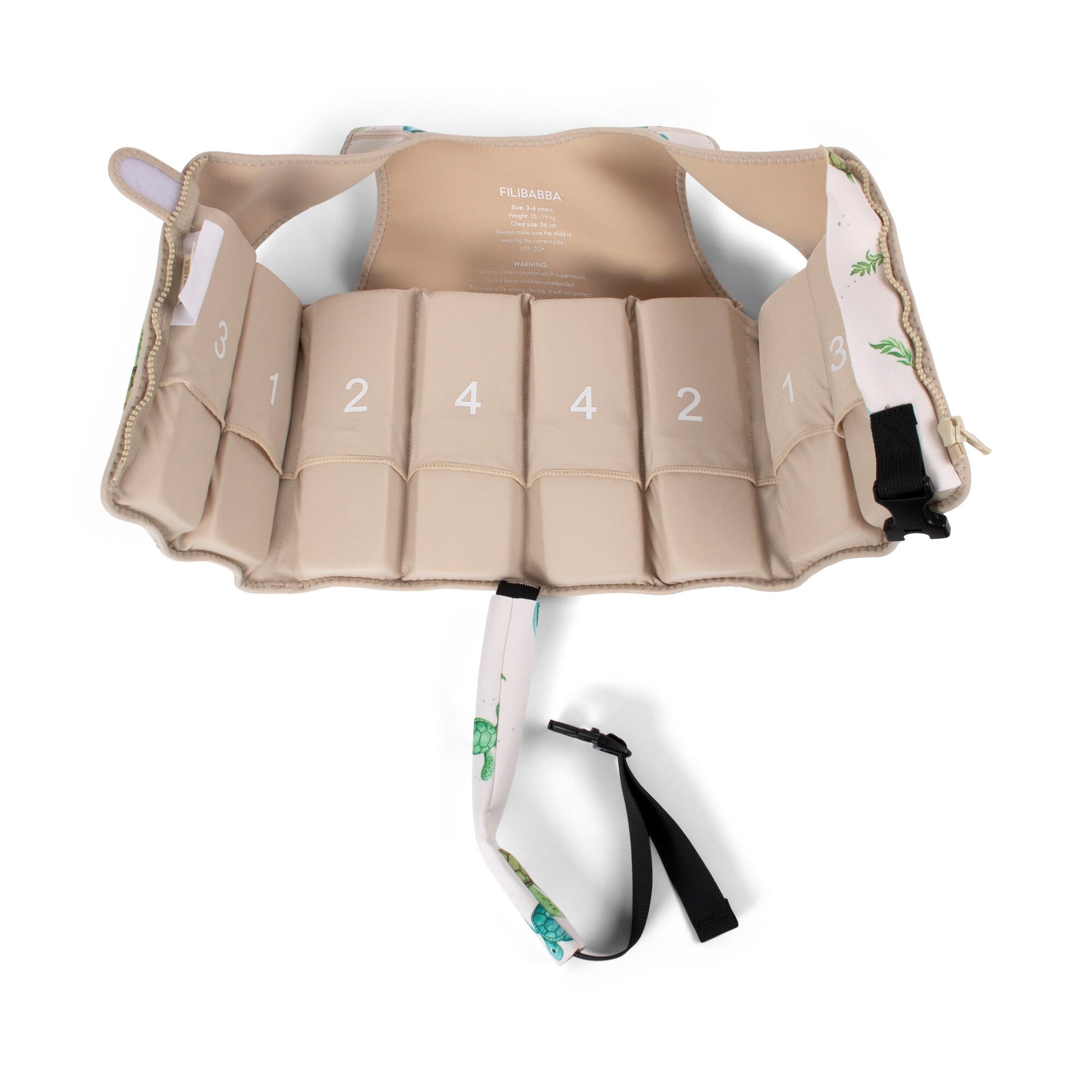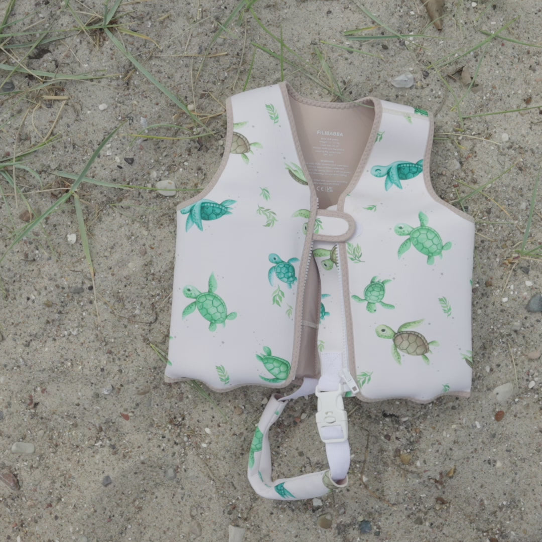 Az úszástanulás ugyanolyan izgalmas, mint amennyire kihívást jelent gyermeke számára, különösen, ha a kicsi fél egy kicsit a víztől. A teknősös mintával ellátott úszómellényünk UV 50+ védelmet, nagy ölelést és extra magabiztosságot biztosít a medencében, és segít megőrizni gyermekét a természetes úszáspozícióban az első úszás gyakorlásakor.