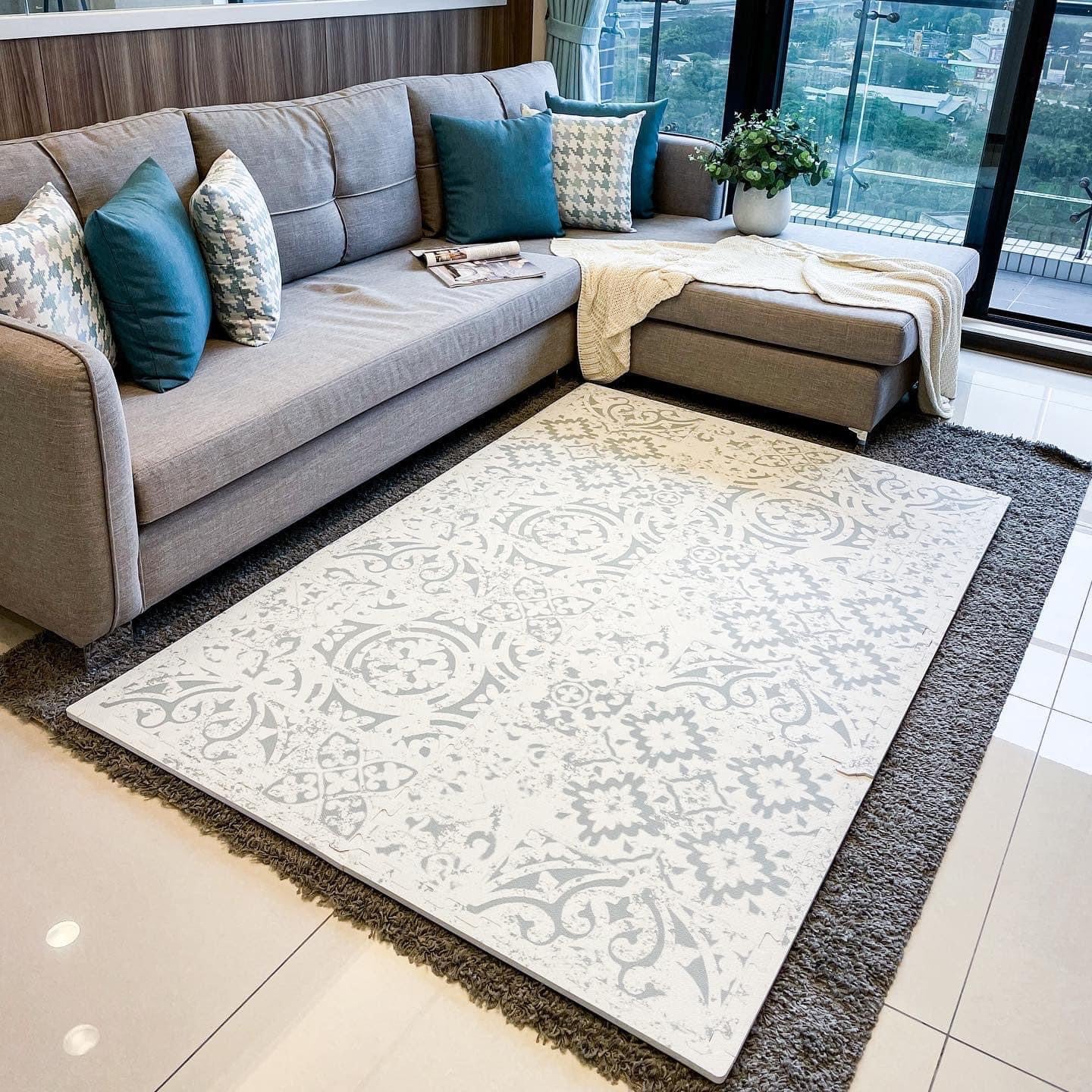 Összeszerelés után a teljes habszivacs játszószőnyeg 124cm × 183cm méretű.