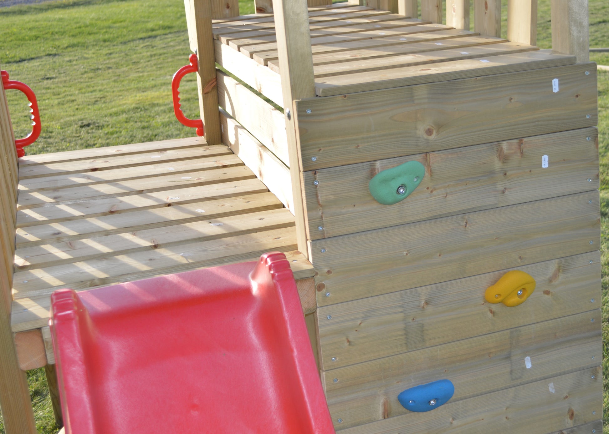 Tower - Platform 90 and 120 cm high, climbing wall, balcony, ladder, plastic handles, 2 ground anchors.