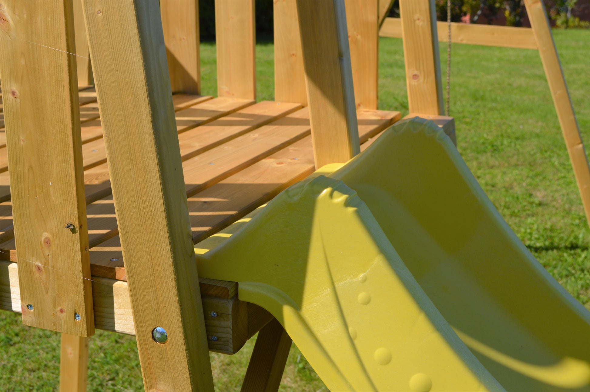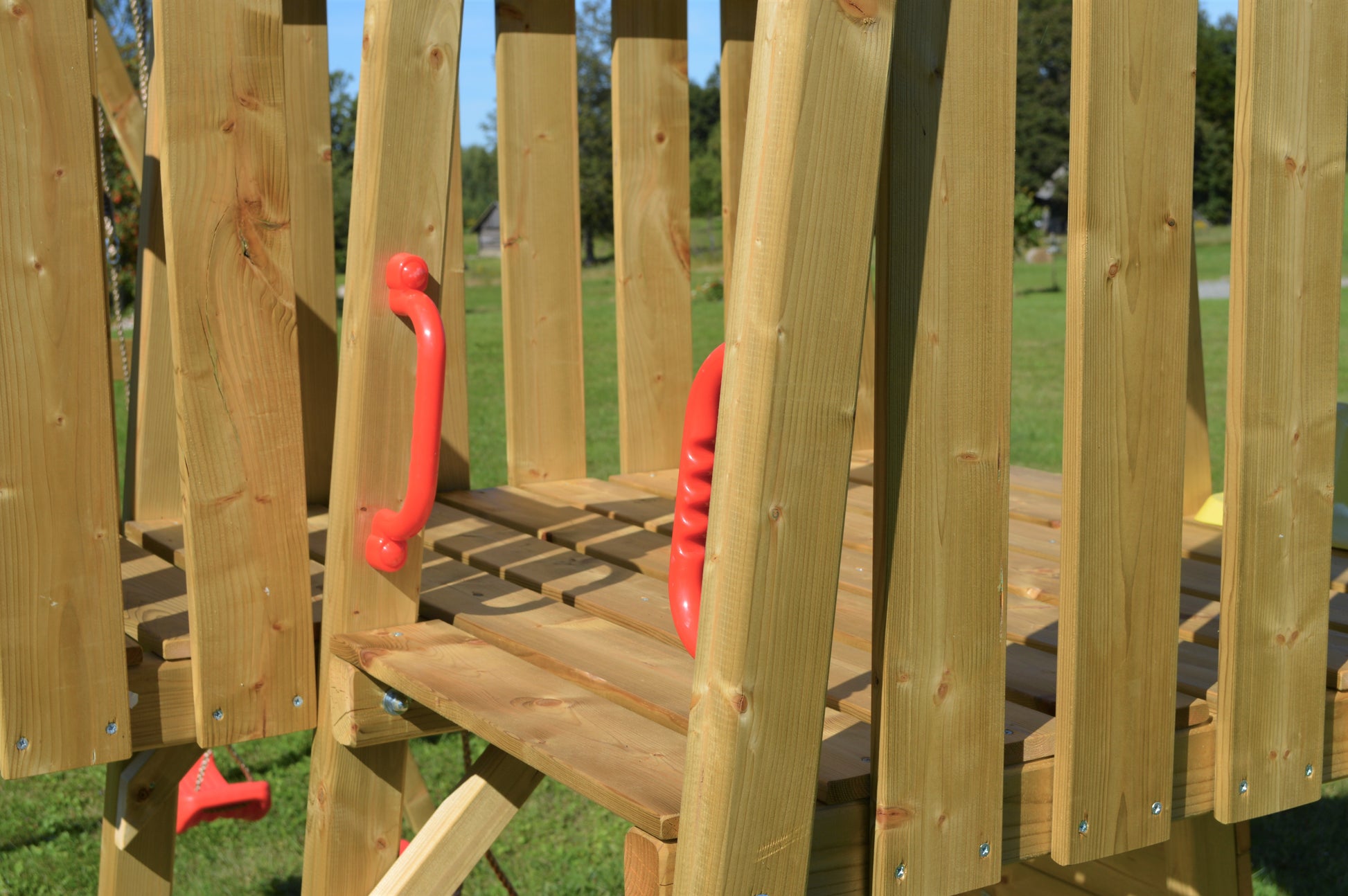 • A játszótér északi lucfenyőből készült, és védett a rovarok és gombák ellen. A fa impregnált és FSC tanúsítvánnyal rendelkezik.