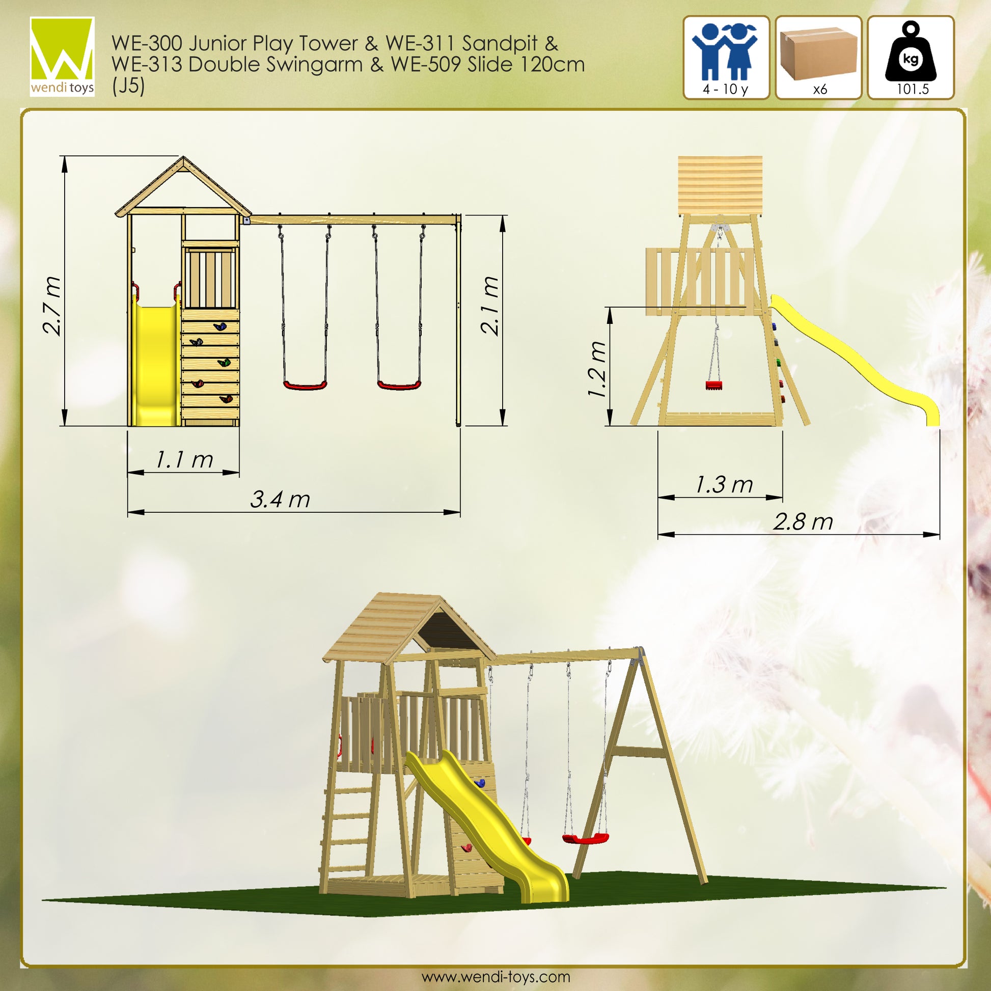 J5 Wendi Toys Junior játszótér (WE-300 Játszótorony + WE-509Y Csúszda + WE-311 homokozó fedéllel + WE-313 dupla hinta)