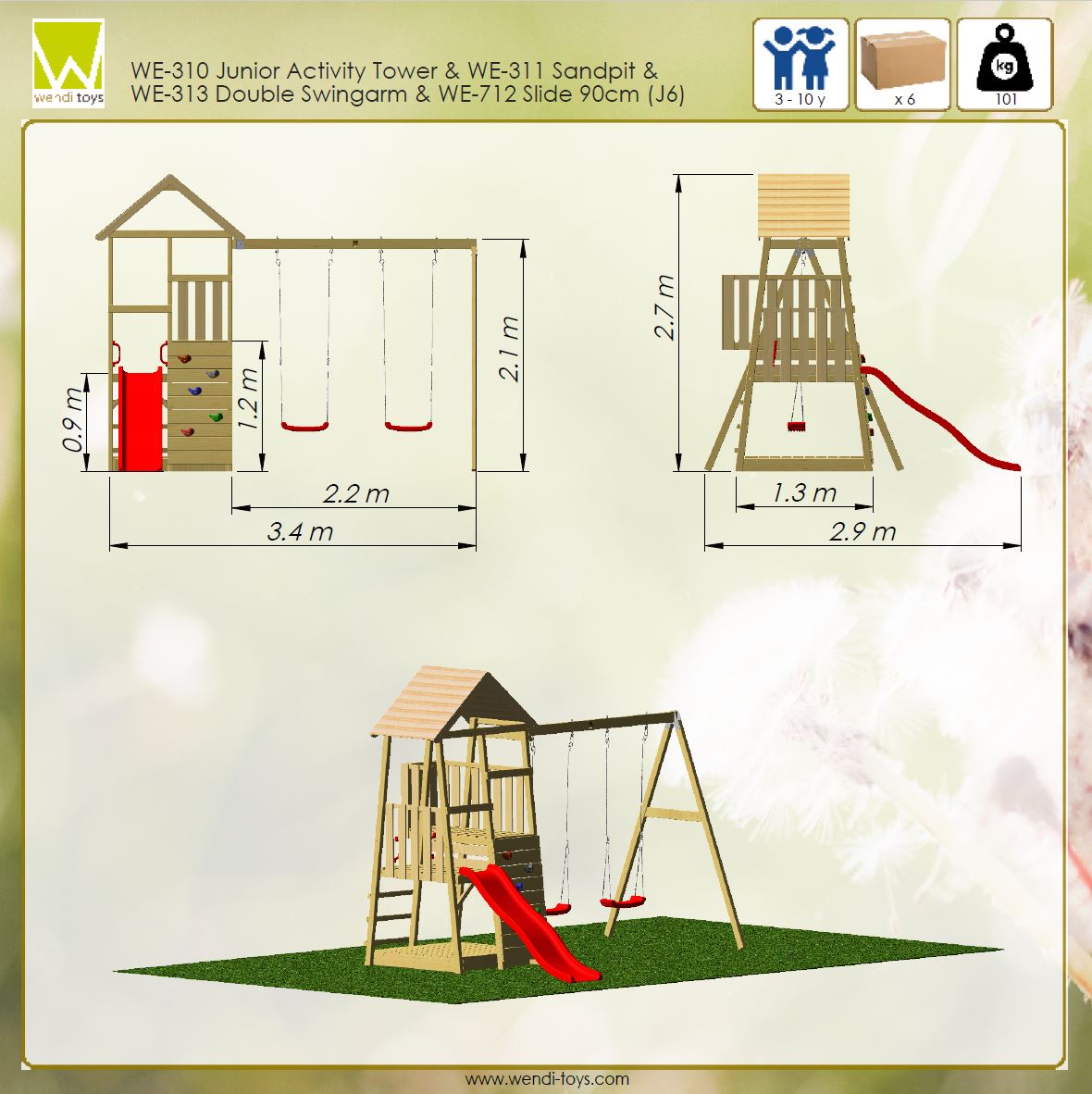 J6 Wendi Toys Junior játszótér (WE-310 Torony + WE-712R Csúszda + WE-311 homokozó fedéllel + WE-313 dupla hinta)