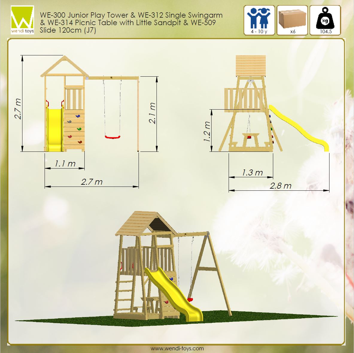 J7 Wendi Toys Junior playground (WE-300 Play Tower + WE-509Y Slide Yulvo + WE-314 picnic bench and small sandpit + WE-312 a swing arm)