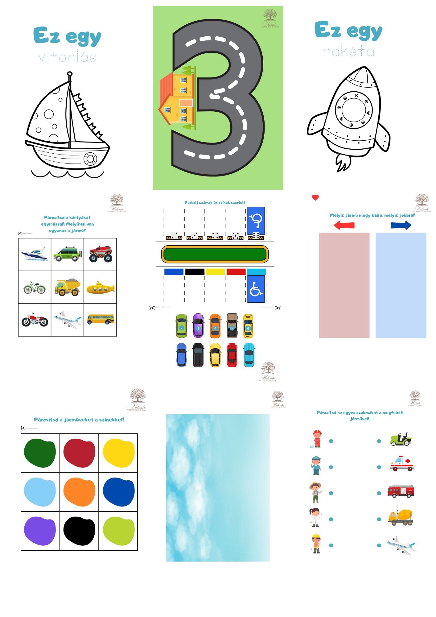 32 oldalas füzet 3-4 éveseknek: - Irányok - Színek - Kifestő - Szárazföldi, légi és vízi járművek - Sorszámnevek - Számok és mennyiségek 6-ig
