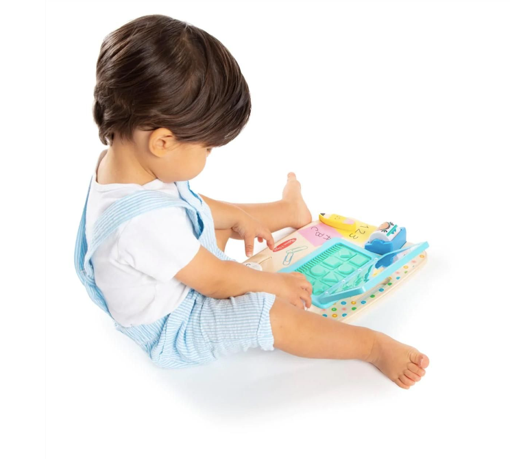 A fa asztali laptop kiegészítőkkel már 1 éves kortól nagyszerű szórakozást nyújhat a kicsiknek, ahol a gyermekek utánozhatják szüleik mozdulatait home office közben és különböző történeteket találhat ki a kisgyermek.