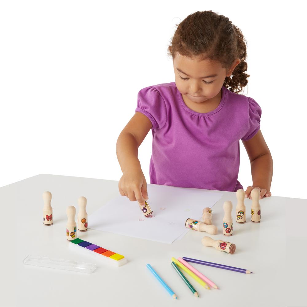 Melissa & Doug Fa nyomda készlet ceruzákkal, nagy méretű, fogantyús