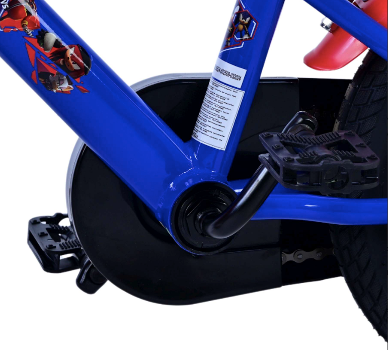 A biztonság az első! Ezért ez a menő kerékpár kézifékkel és kontrafékkel, valamint zárt láncházzal rendelkezik. Ezenkívül a kerékpár eltávolítható pótkerekekkel rendelkezik, hogy gyorsan megtanuljon biciklizni a gyermek. A kényelemre is gondoltak. A gyönyörű kék, piros díszítésű Sonic kerékpár kellemesen puha nyereggel és extra masszív vázzal rendelkezik, amely bírja az igénybevételt. A nyereg állítható magasságú, hogy minél tovább élvezhessük a kerékpárt. Röviden: egy kiváló minőségű kerékpár, amelyet gyermeke még évekig élvezhet!
