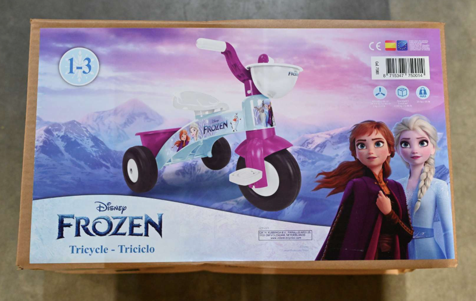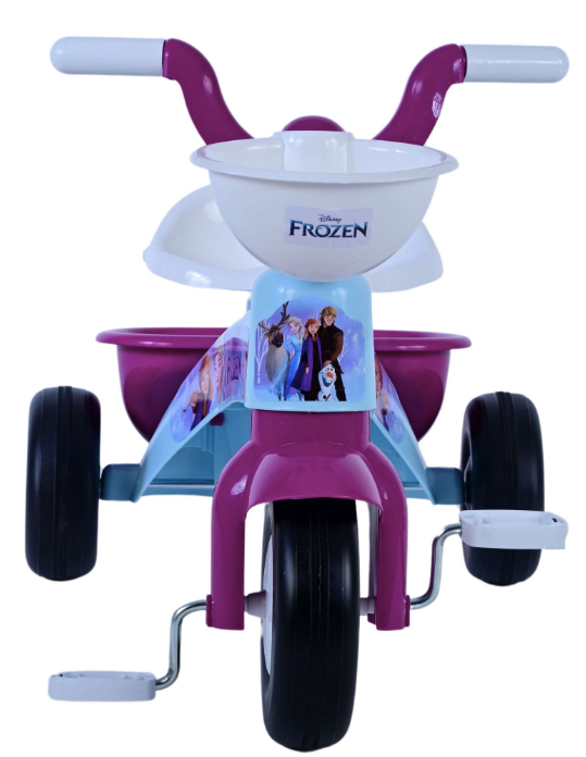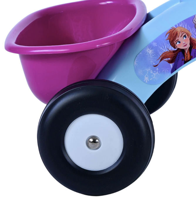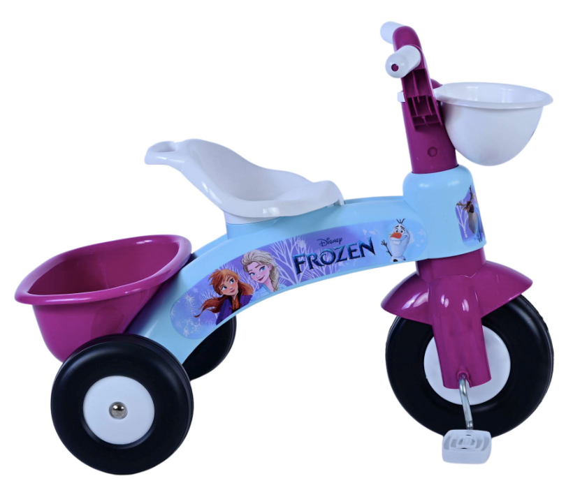 A világos kék színű tricikli gyönyörű Disney Jégvarázs grafikával. A tricikli elöl és hátul kosárral rendelkezik, így gyermeke magával viheti kedvenc játékait. 1 és 3 év közötti gyermekek számára alkalmas, teherbírása 25 kg.