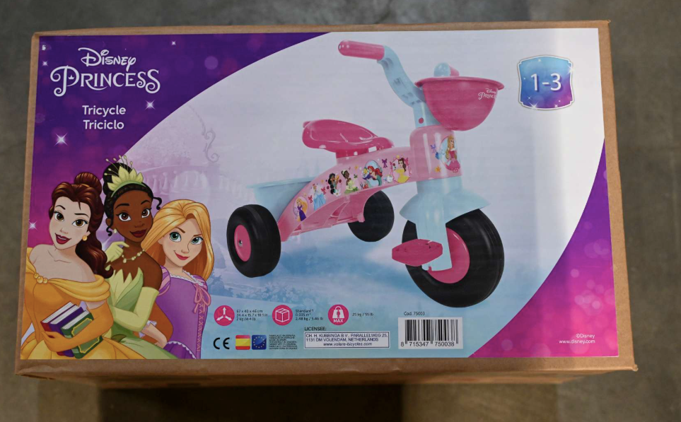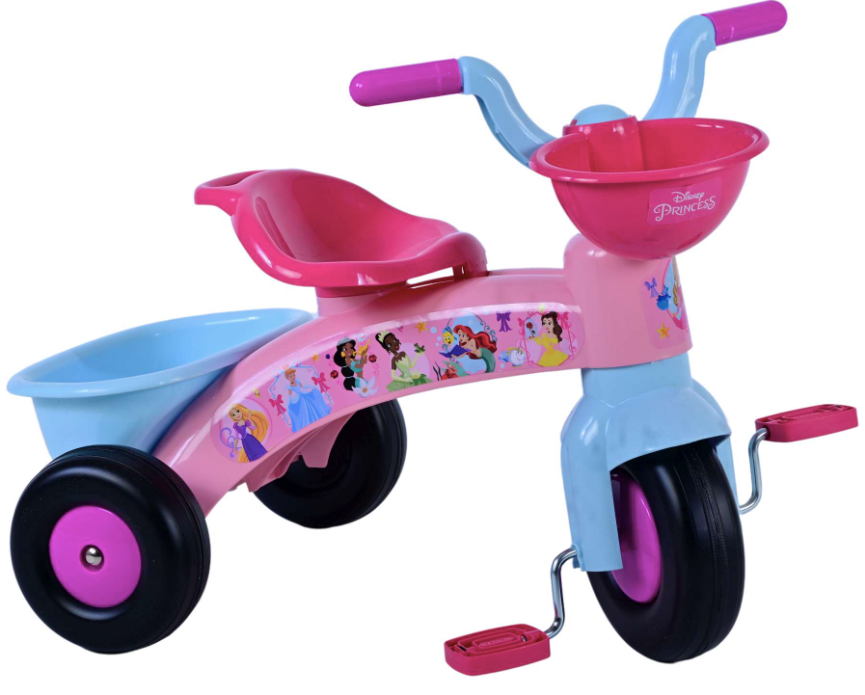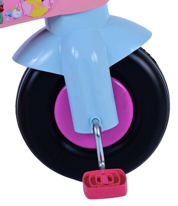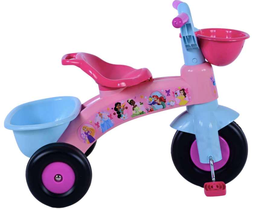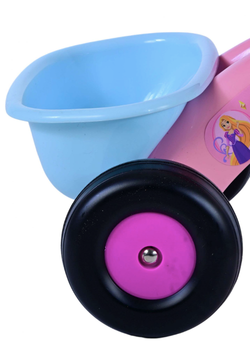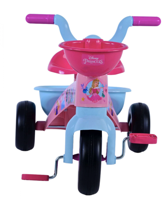 A tricikli rózsaszín színű és gyönyörű Disney hercegnők grafikával rendelkezik. A tricikli elöl és hátul kosárral rendelkezik, így gyermeke magával viheti kedvenc játékait.