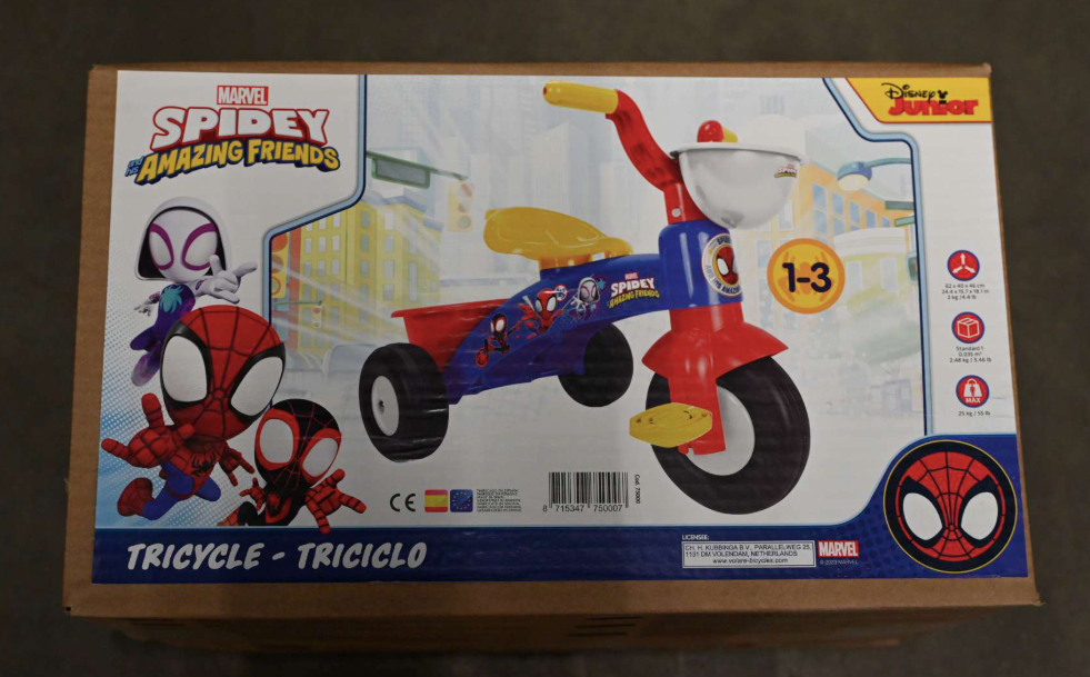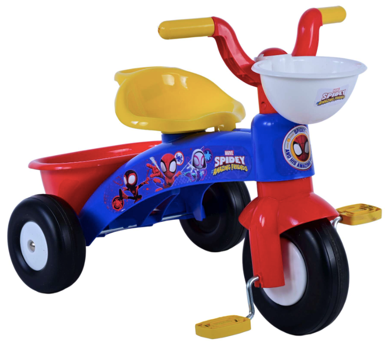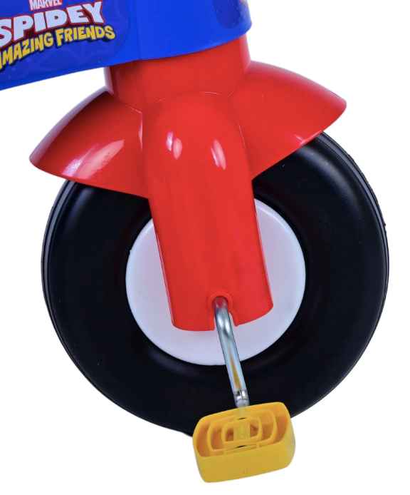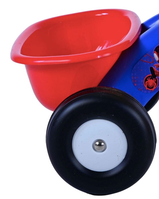 A kék színű tricikli gyönyörű Marvel Pókember grafikával. A tricikli elöl és hátul kosárral rendelkezik, így gyermeke magával viheti kedvenc játékait.