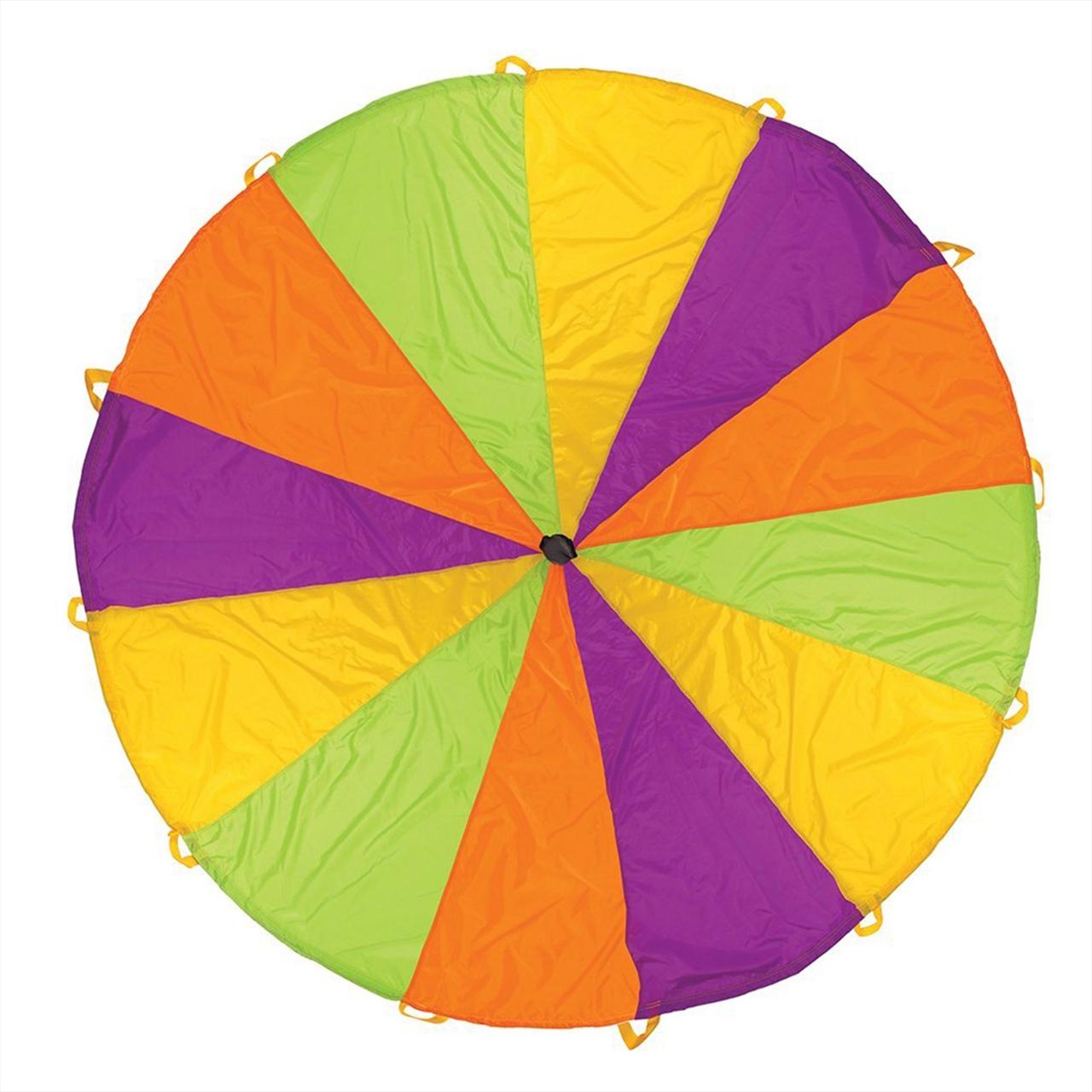 Wonderland ernyős játék csapatnak, 12 fogantyúval. A színes ernyő átmérője 305 cm.