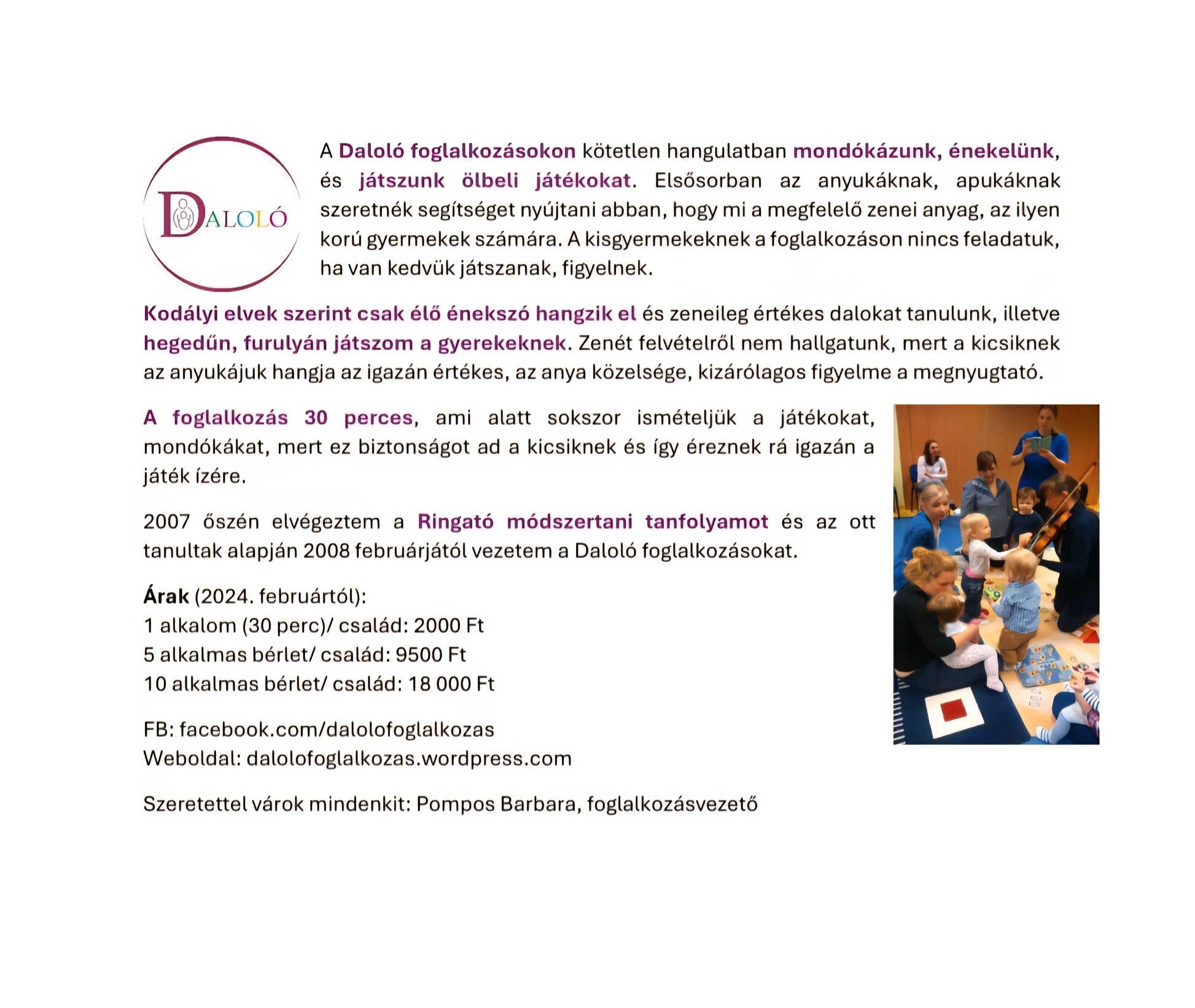 A foglalkozások díjáról az adott foglalkozás vezetőjénél tudtok információt kapni.