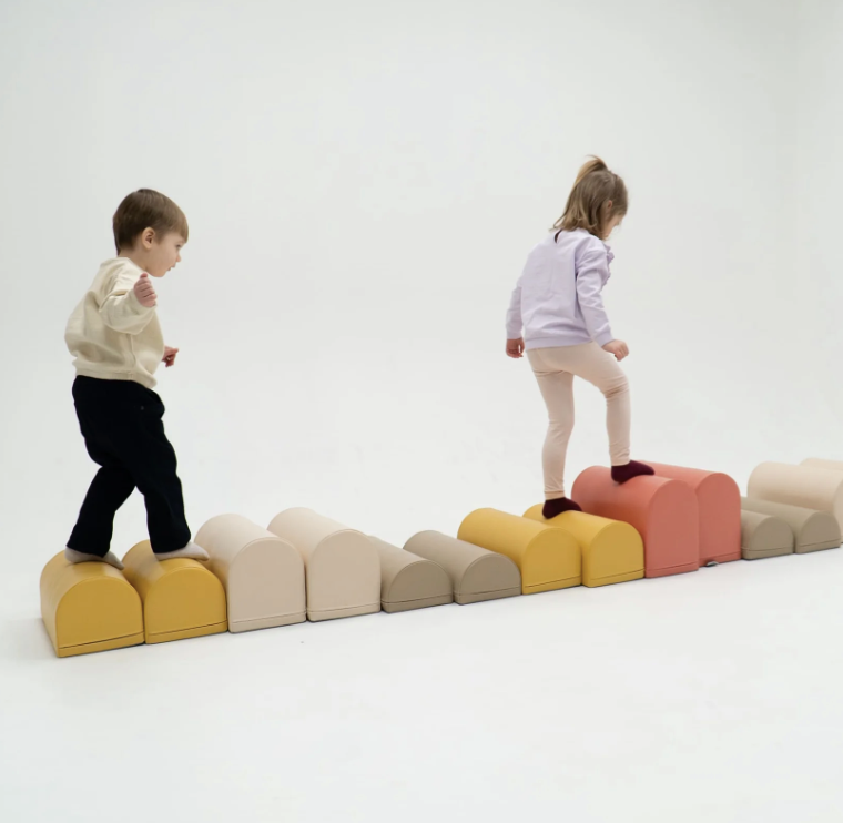 🦶 Rendezd el a kockákat ugródeszkákként az egyensúly és a tempó elsajátításához.