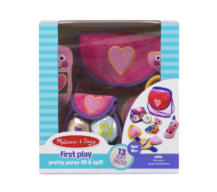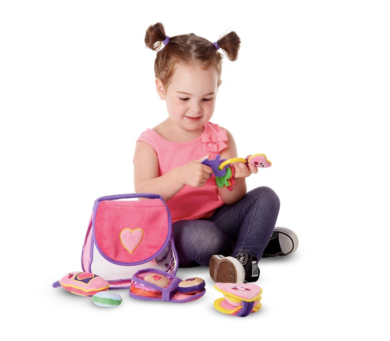 Puha retikül babajáték, valójában egy tizenhárom darabos szerepjáték a legkisebbek számára. Ebbe a csinos táskába minden belefér, ami a kislánynak útközben kellhet! A szett tartalmaz egy csengő mobiltelefont, egy kulcstartót kulcsokkal, egy pénztárcát érmékkel és egy púderesdobozkát gyermekbiztos tükörrel. Minden könnyen eltávolítható és visszahelyezhető egy bájos rózsaszín pénztárcába, lila fogantyúval. Kiváló minőségű anyagokból és műanyagból készült, több órányi szórakozást kínálva a kislányoknak.