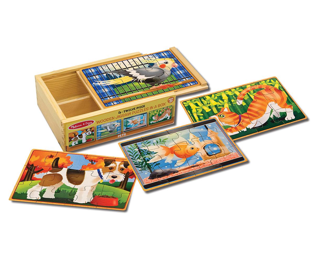 Melissa & Doug Fa készségfejlesztő játék, Puzzlek dobozban, kis kedvencek
