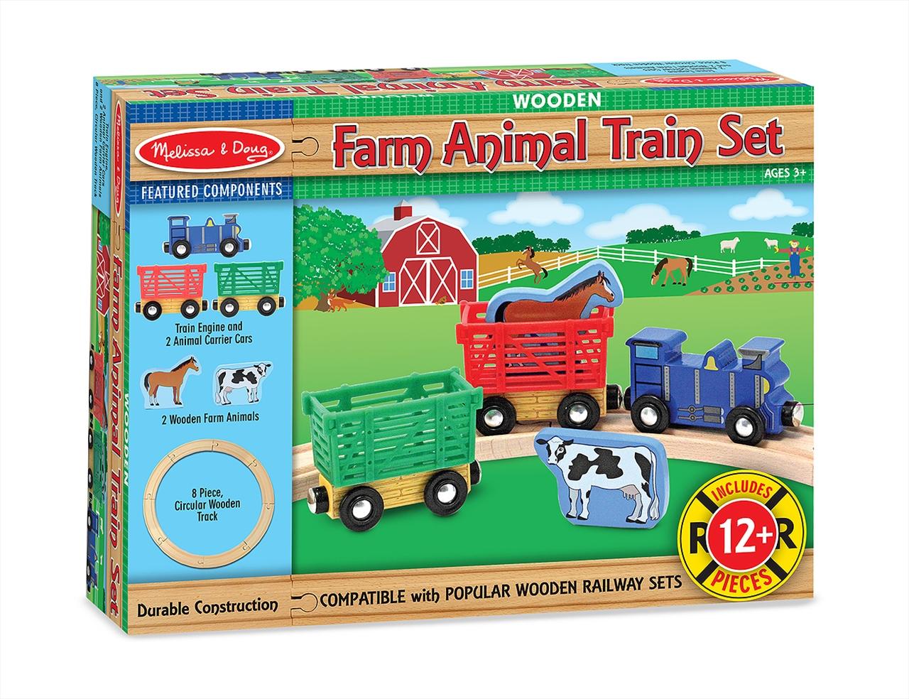 Melissa & Doug Fa vonatok és sínek, Állatszállító vonat 8 db-os sínkészlettel