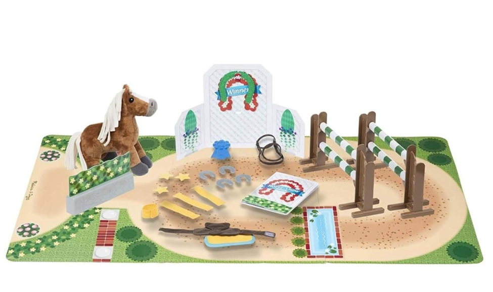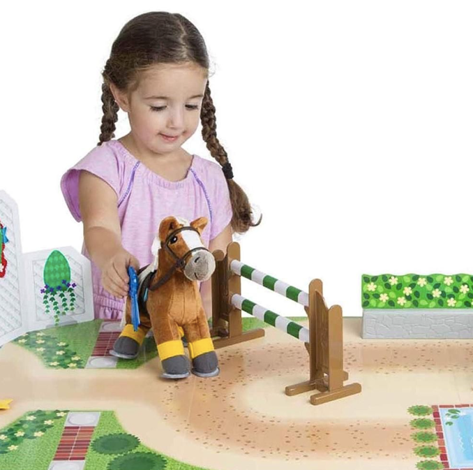 - az extra nagy kihajtható játékszőnyeg elég nagy, hogy több gyermek is játsszhasson egyidejűleg. Kiválóan alkalmas edzésekhez, lovasbemutatókhoz és versenyekhez, valamint a díjátadó ünnepség megtartásához