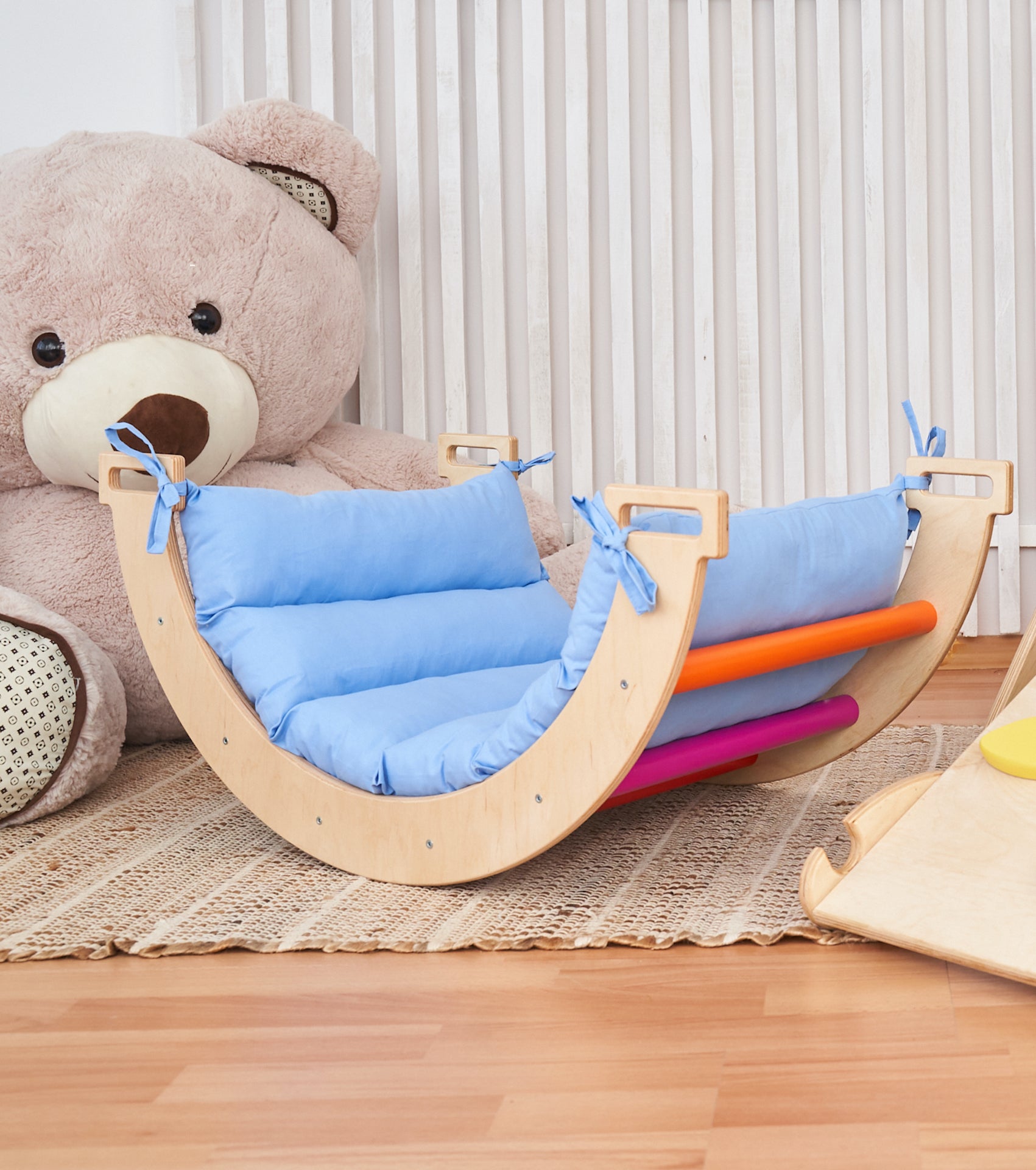 Montessori szivárvány hinta párnával (kis méretű, élénk színek)
